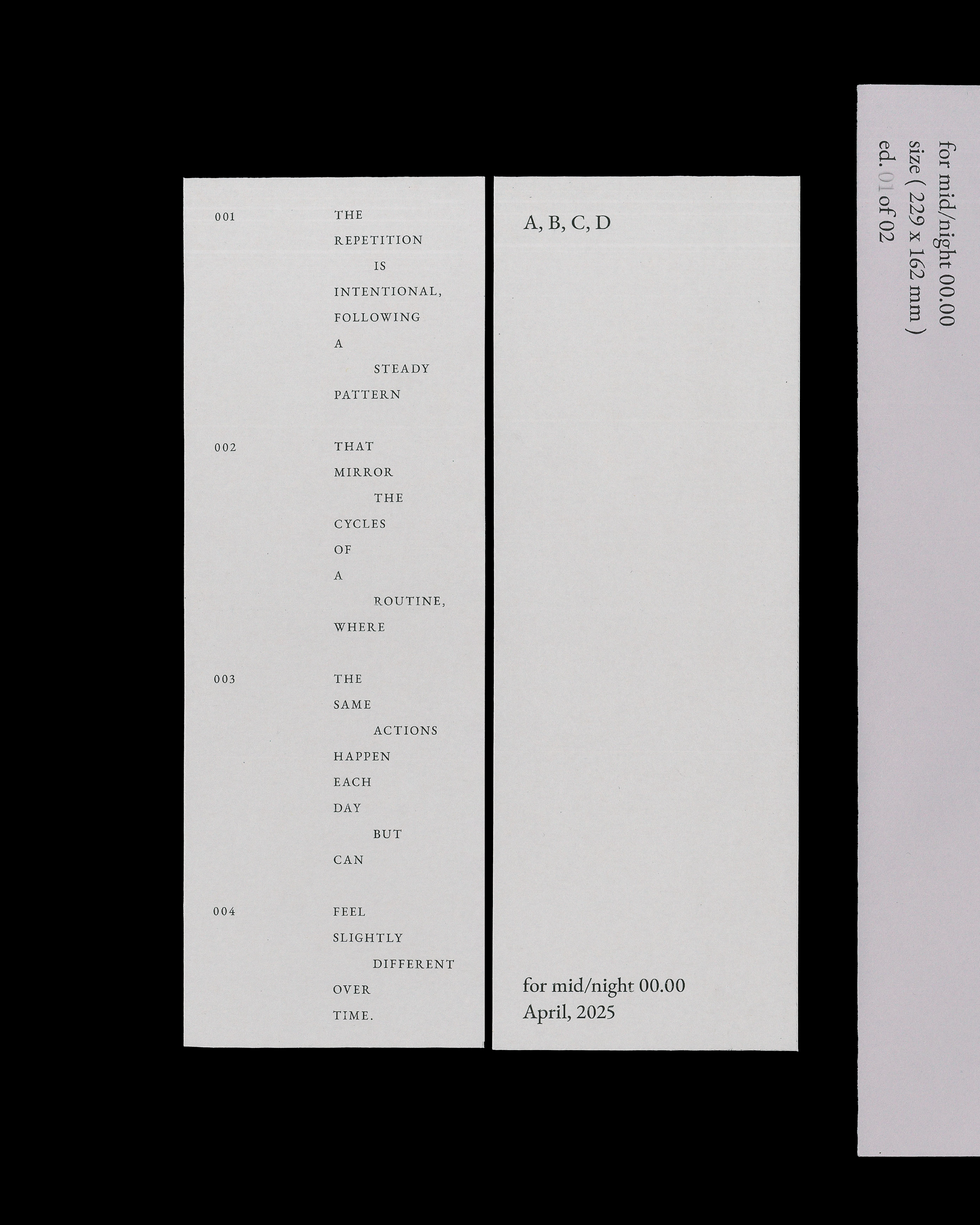 Founded by mid/night 00.00 in 2023, "A Routine Seenby" is a project dedicated to exploring our products through diverse artistic perspectives.