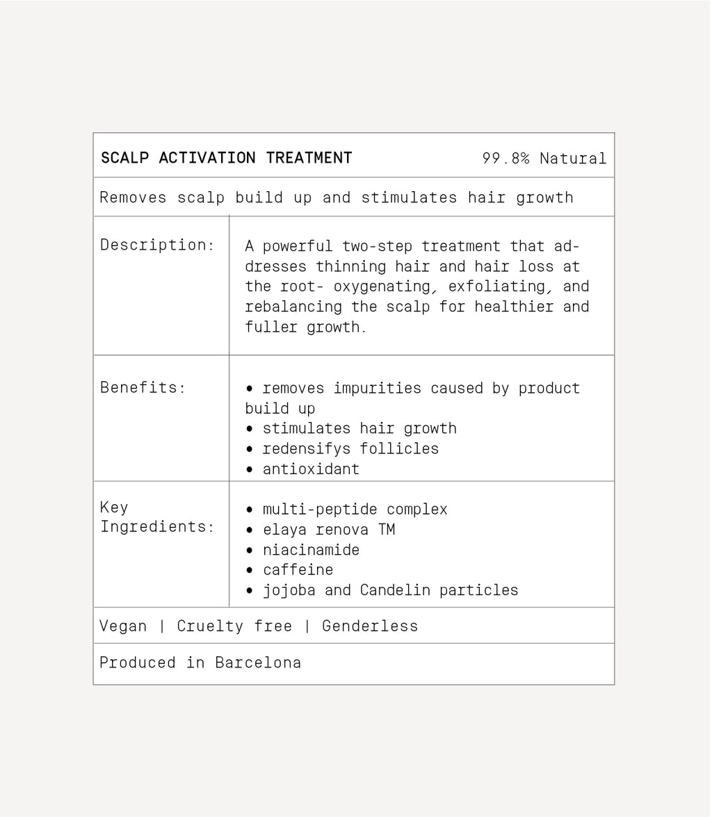 • Using Scalp Activation Serum 00.32 immediately after the Scalp Scrub 00.31 is ideal because the scrub detoxifies, exfoliates, and reactivates microcirculation, leaving the scalp perfectly clean and more receptive to the active ingredients in the scalp drops. This helps the Scalp Activation Serum 00.32 penetrate more deeply, reactivate hair follicles, and promote stronger, denser hair growth.