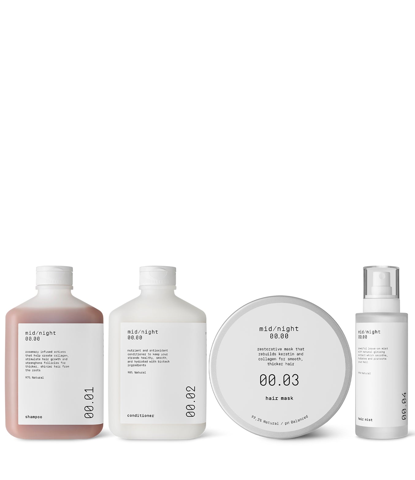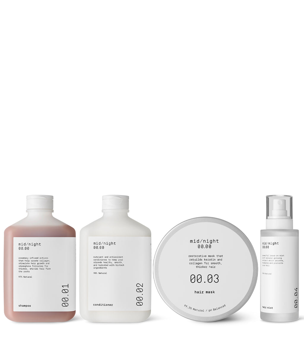 La Hair Routine es un sistema completo de varios pasos diseñado para limpiar, fortalecer, reparar y proteger tu cabello. Incluye el Shampoo 00.01, el Conditioner 00.02, la Hair Mask 00.03 y la Hair Mist 00.04, cada uno formulado para actuar en conjunto y lograr resultados óptimos y un cabello más sano y resistente.
